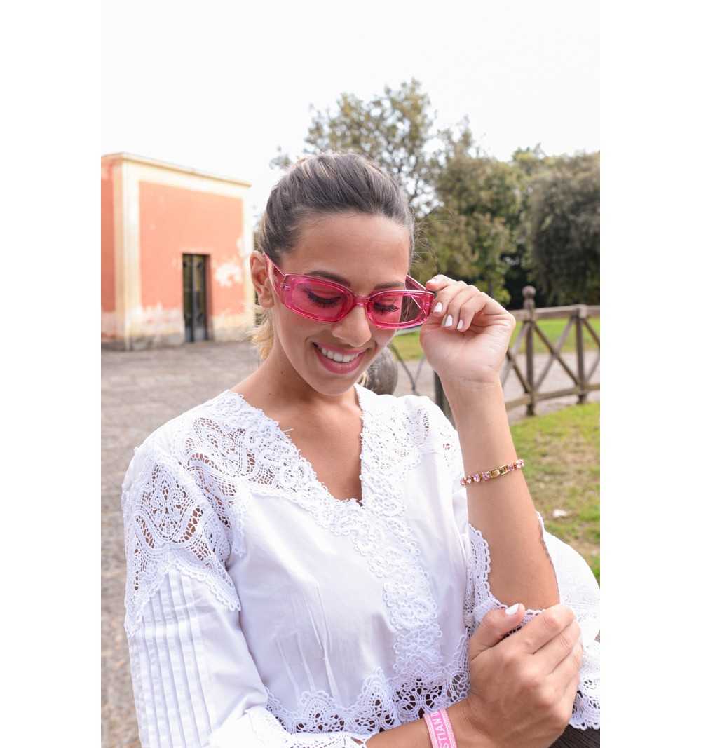 Omaggio ai colori forti e agli anni '90, frontale stretto smussato ed aste larghe